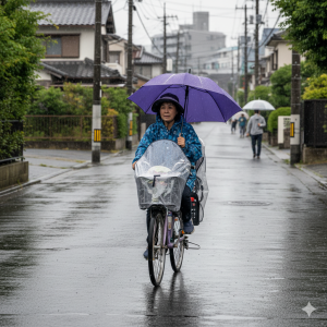 いや、配達仕事をしている者だけでなく、傘差しながら自転車こいでいるいるオバちゃんや並んで走行している高校生なども軒並み取り締まりの対象です。
